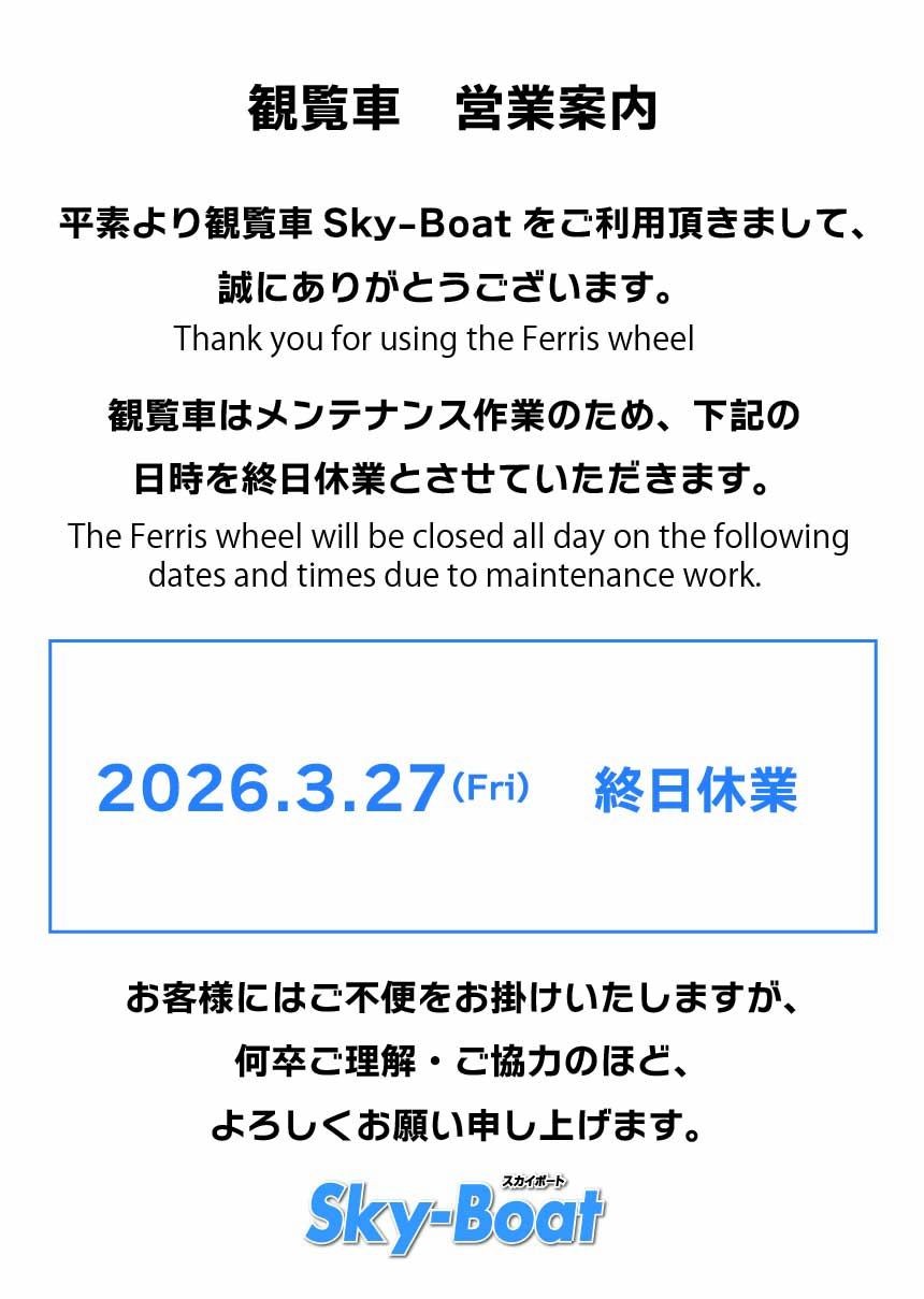12:00~22:00 (最終搭乗21:45) |