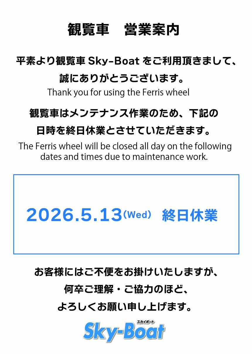 12:00~22:00 (最終搭乗21:45) |
