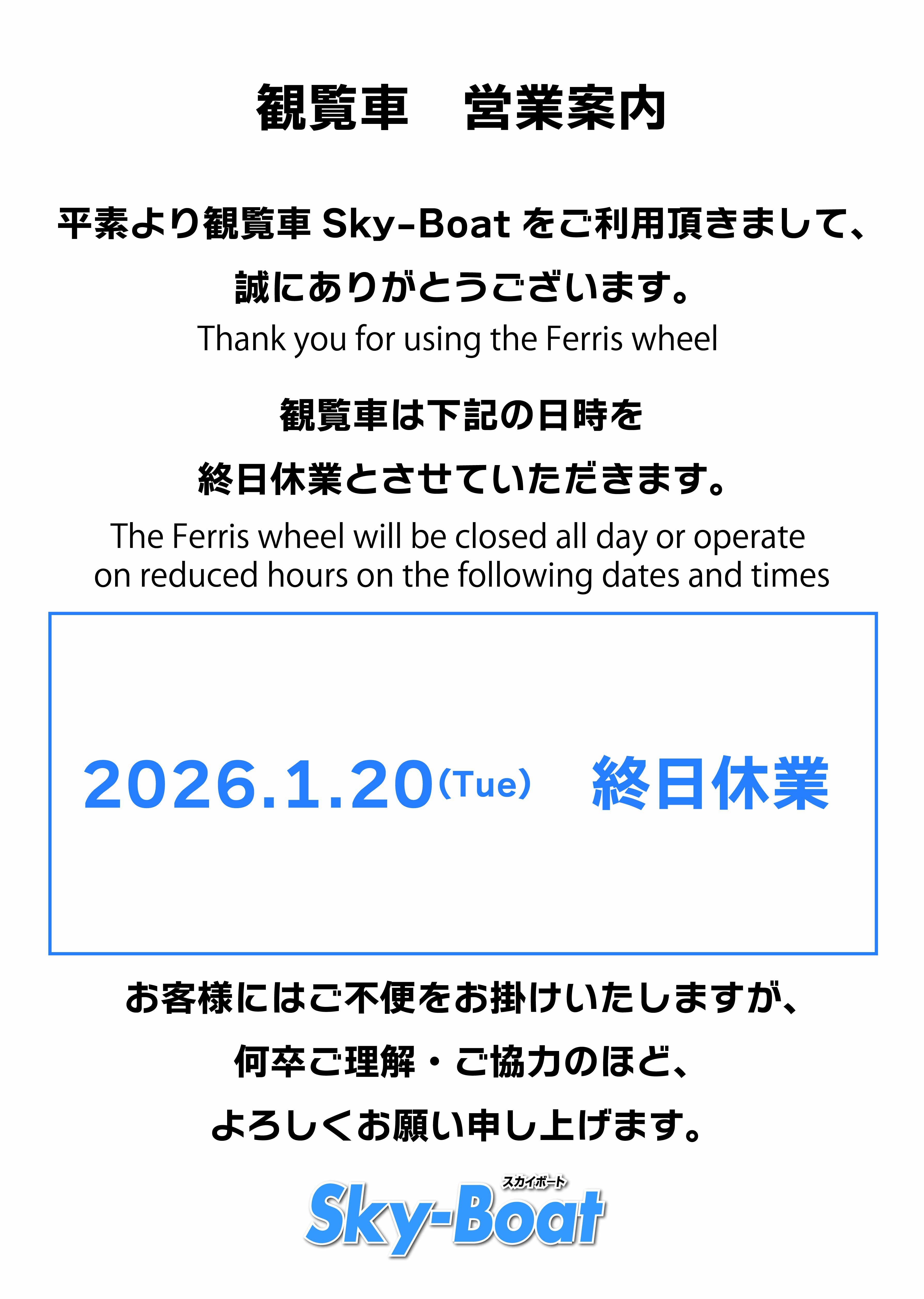 12:00~22:00 (最終搭乗21:45) |